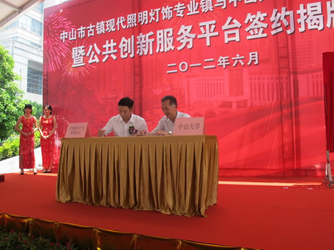 ???? On June 29th 2012, the signing ceremony of Zhongshan Guzhen modern light specialized town and Sun Yat-sen University comprehensive strategic collaboration agreement as well as the launch ceremony of public innovative service platform was held in the front square of Guzhen international lighting building, Yang Rongjian, the mayor of Guzhen government, Xia Lianghui, President assistant of Sun Yat-sen University, Wu Yuexia, deputy mayor of Sun Yat-sen University, Yu Jian, vice-chief of the science and technology agency of Guangdong province made speeches respectively.