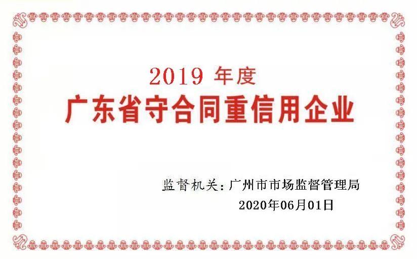 ?近日,在廣州市工商行政管理局對外公告中,我公司被評選為“2019年度廣東省守合同重信用企業”。